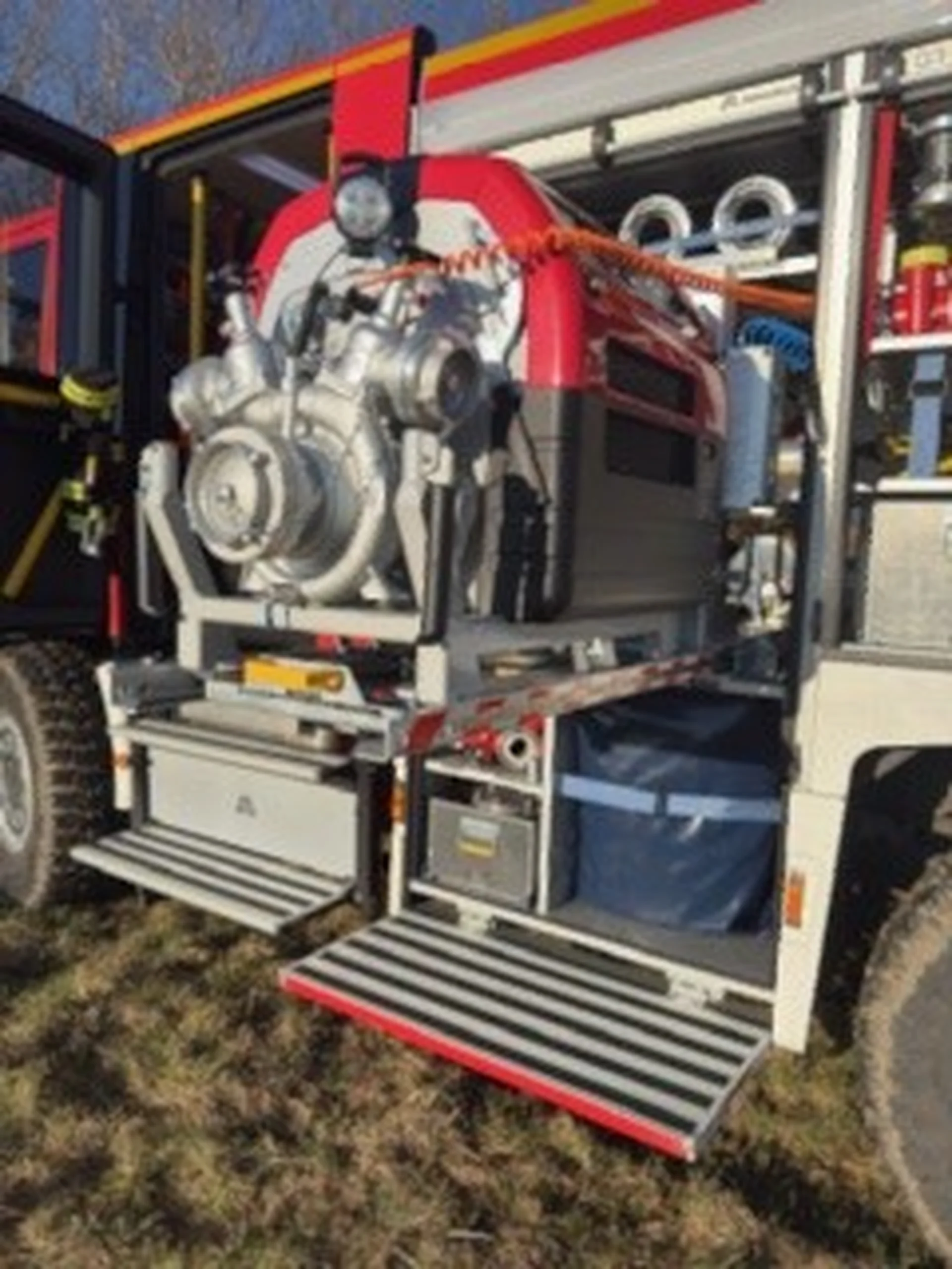 - Feuerlöschkreiselpumpe: Eine vom Fahrzeugmotor angetriebene Pumpe mit einer Förderleistung von 2.000 Liter pro Minute bei 10 bar.