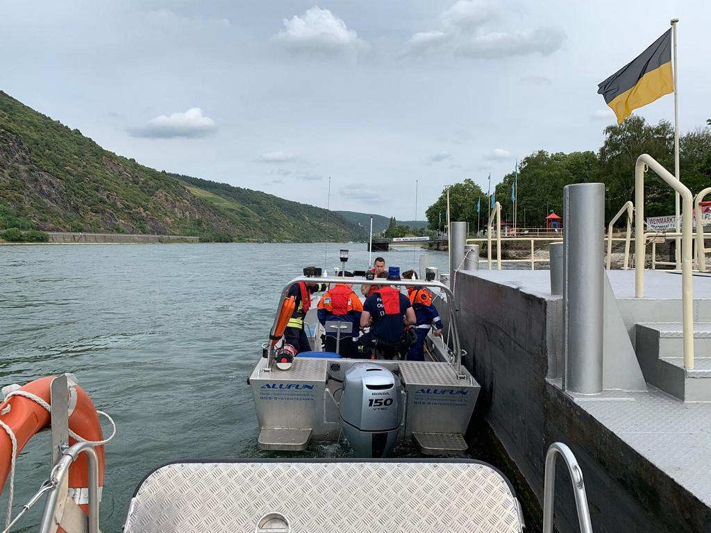 Dort nahmen uns die Kameraden der Feuerwehr Oberwesel und der Feuerwehr St. Goar mit ihren Feuerwehrbooten (Rettungsboot 2 und Mehrzweckboot) in Empfang.